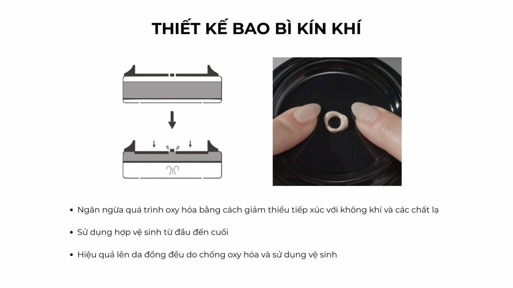 Điểm đặc biệt: Không có phần thay lõi, đảm bảo vệ sinh và giữ trọn vẹn chất lượng của lõi phấn bên trong.